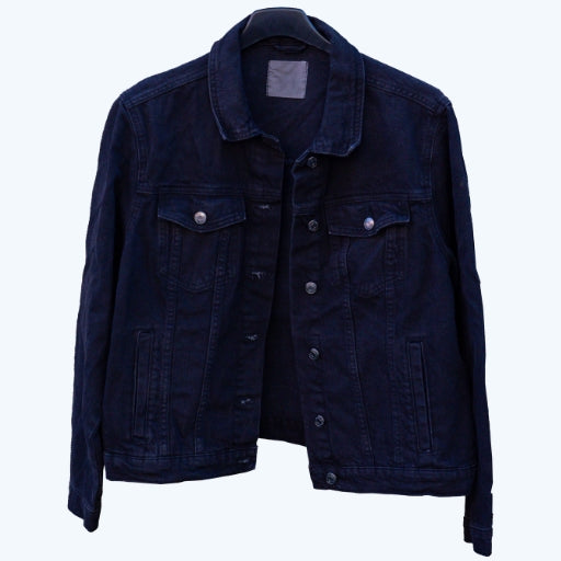 Giacca in denim nera di seconda mano, selezionata e sanificata